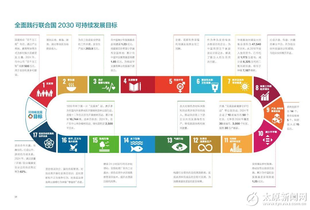 今年,完美公司发布《完美(中国)2024可持续发展报告》(简称《报告》),这是完美公司发布的第3份可持续发展报告暨第10份社会责任报告。《报告》以“共同成长,完美生活”为主题,深度融入联合国可持续发展目标理念,围绕“与完美共进”“与中国同心”“与时代偕行”三大主题篇章深入展开,以严谨、全面的视角对17项联合国2030可持续发展目标(SDGs)逐一作出回应,从环境、社会、治理等多方位向公众展示了完美公司2024年在可持续发展管理、社会责任实践方面的履责成效。