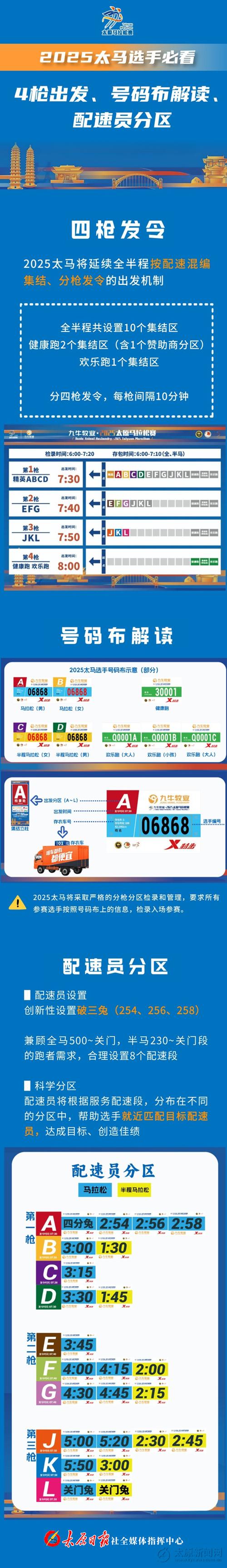 长图|太马选手必看:4枪出发、号码布解读、配速员分区