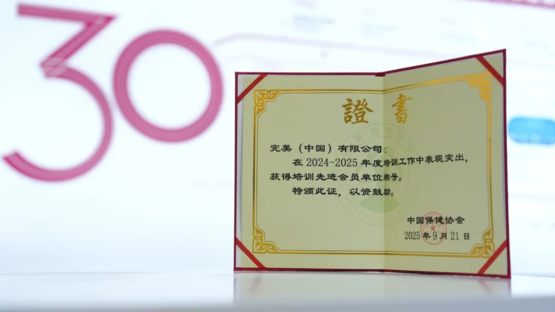 9月21日,完美公司受邀出席2025保健行业从业人员培训高质量发展成果报告会,与行业专家一同探讨培养健康行业后备力量的前沿方向,会上,完美公司和上海臻领健康科技有限公司分别荣获“培训先进会员单位”和“合作培训先进单位”。