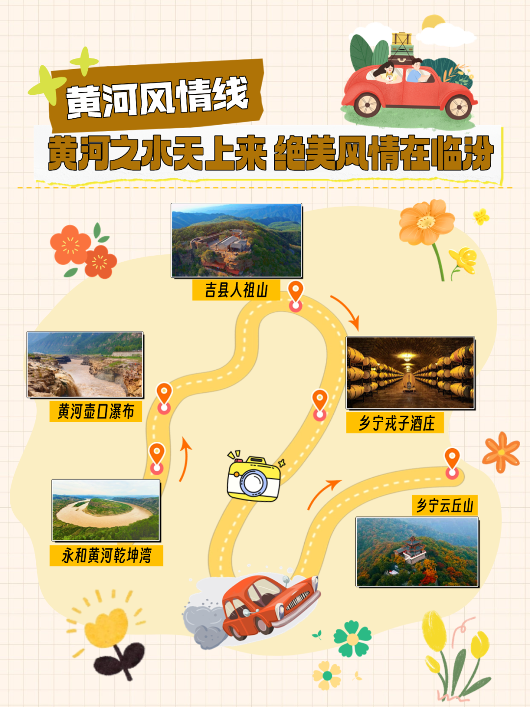 永和黄河乾坤湾一黄河壶口瀑布(山西临汾吉县侧)一吉县人祖山一乡宁戎子酒庄一乡宁云丘山