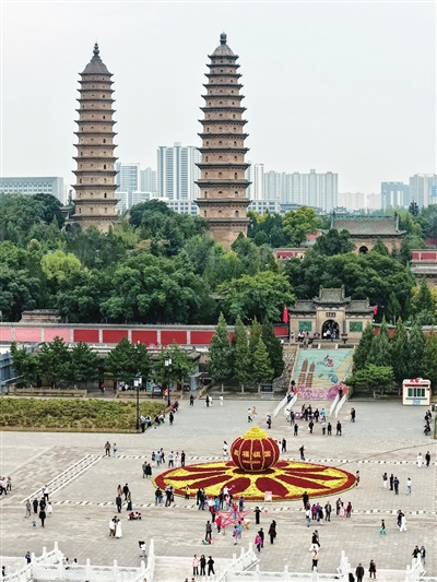 双塔无声,秋菊有韵。“菊韵龙城·绮梦绽放”花坛、“菊舞古建·韵动龙城”花坛、“菊韵晋风·盛世太原”花坛、“花海踏浪”花坛、“生命交响苑”花坛、“集雅”花坛……“双塔凌霄”奇观,色彩斑斓、奇姿异彩的菊花,为广大游客带来兼具文化内涵与视觉享受的游览体验。游客若是乏了,不妨在翙然亭、清晖廊等处歇歇脚,细品公园里美轮美奂的仿古建筑群,或是进问月轩观非遗技艺,或是到墨韵阁赏传统汉服,于淡淡菊香之间,享受雅致与宁静,也是挺好的。