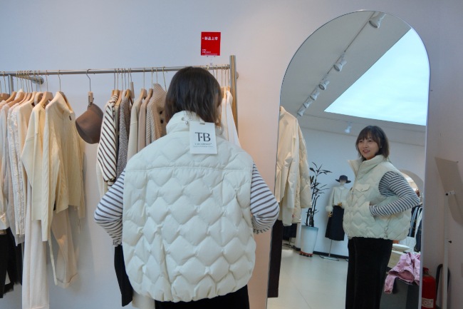 随着气温逐渐下降,防寒保暖衣物迎来热销。图为10月16日,小店区体育西路一家服装店内,羊毛衫、羽绒服等衣物受到消费者的青睐。王韵菲 摄