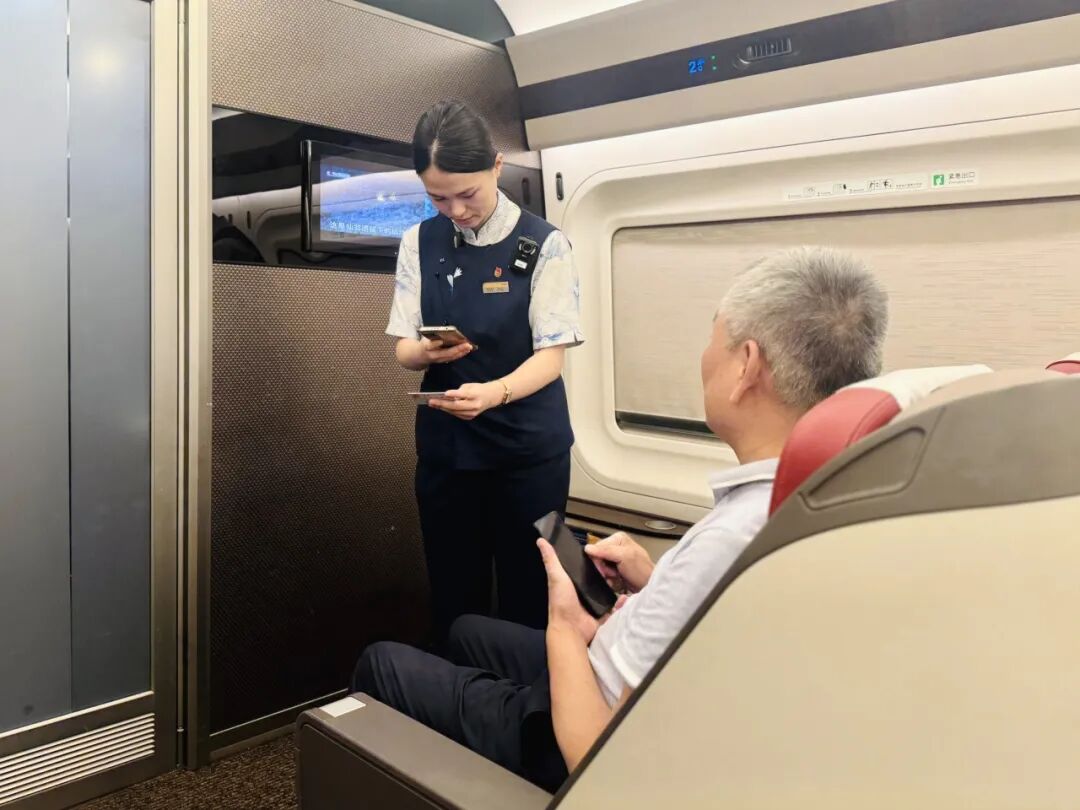 乘车途中,常旅客会员可扫描座椅扶手上的“铁路畅行”二维码登记升席需求,也可直接联系列车工作人员办理;接到旅客升席需求后,列车工作人员将根据列车座席空余情况及时进行办理。
