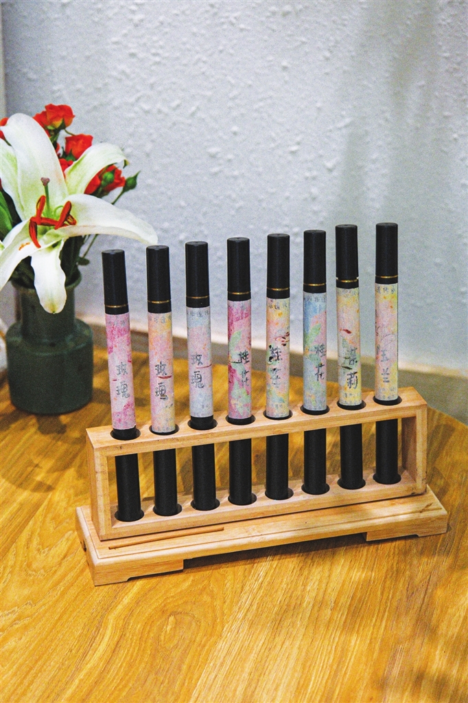 “是的,我们选择云南香味最好的玫瑰花制作玫瑰线香,留住最美的味道。这也是献给生活的一种仪式感。”李慧青说,这里常做的花香共有四种:玉兰花、桂花、玫瑰花、茉莉花,主要为养心用香。