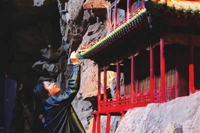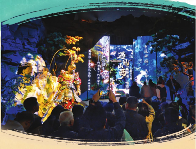 展厅内,游戏中的角色、场景与精细的古建三维模型交相辉映,游客仿佛穿越于神话与历史之间。