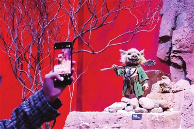 身着全套孙悟空装扮的游客刘荣魁先生,成为全场焦点。他兴奋地表示:“我是孙悟空的铁杆粉丝,得知今天开展,特意装扮成偶像的样子来看展,感觉自己也成了展览的一部分。”