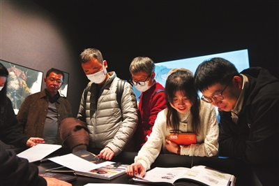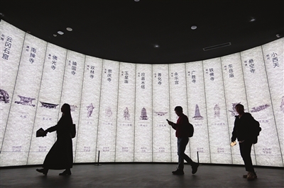展厅内,有家长借助生动的数字模型,耐心地向孩子讲解古建知识;忠实的游戏爱好者则屏息凝神,仔细端详游戏角色的细节设定,如获至宝。
