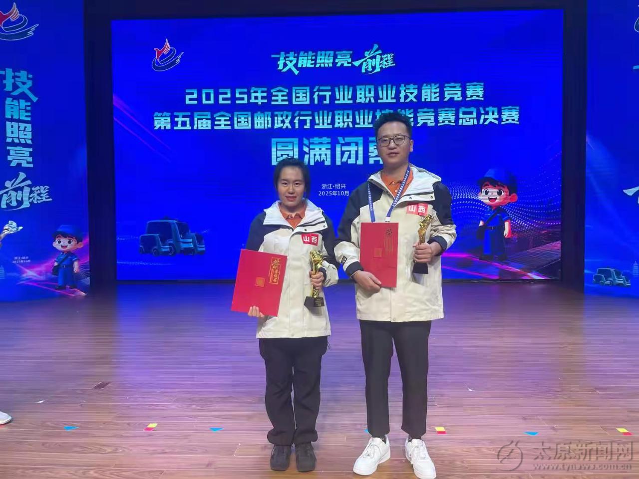 在10月29日至30日举行的2025年全国行业职业技能竞赛——第五届全国邮政行业职业技能竞赛总决赛中,太原市邮政管理局选送的2名选手在全国186名参赛选手中脱颖而出,荣获一等奖。