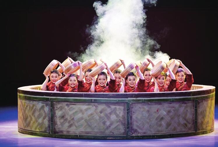 3分半钟的表演,她们围着一只巨大的“蒸笼”,如浪花一般起落、跳跃、舒展,用灵动的舞步演绎农家民俗场景。