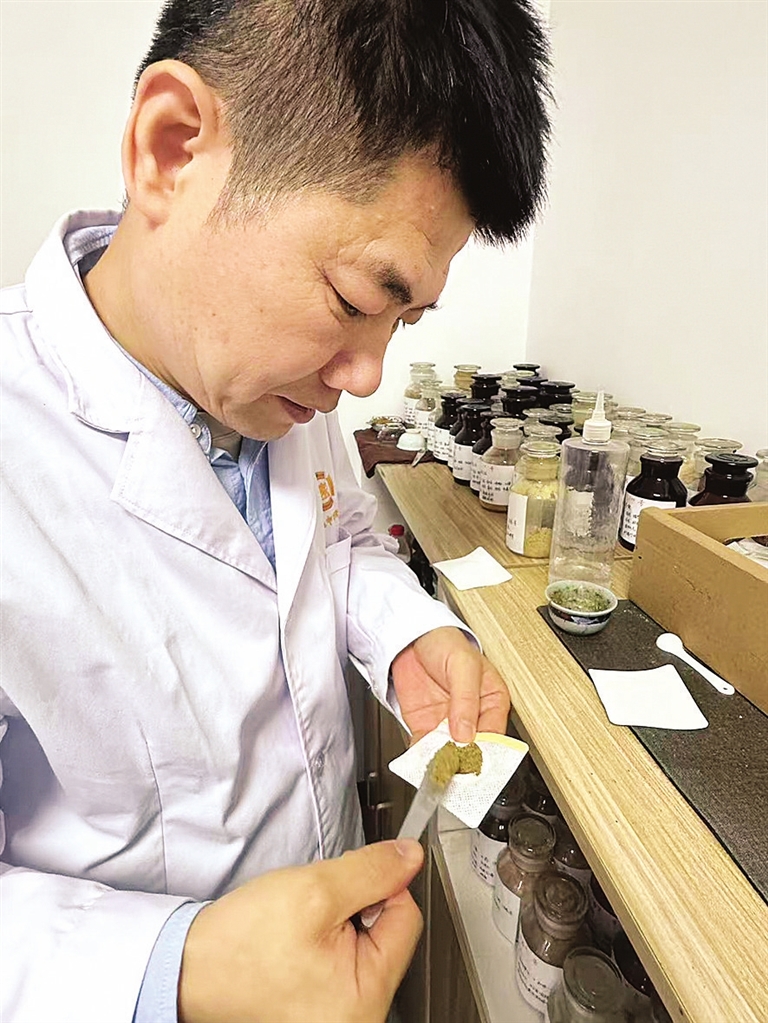 “我是敏感体质,对药性反应明显。每次研发新配方,我都要在自己身上试贴,从两三种方子中选出最优者。”这份以身试药的担当,是大医精诚的生动写照。