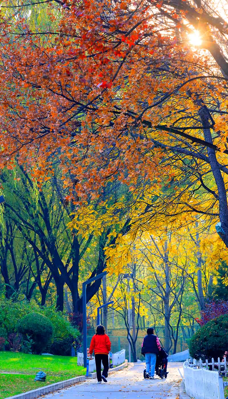 您感受,那河畔小径上的漫步。老两口携手缓缓而行,脚下是沙沙作响的落叶“地毯”,他们不时低语,偶尔驻足,用镜头记录下彼此与秋光的合影。他们的幸福,很简单,就是在这最美的季节里,身边依然是那个看了一辈子的人。