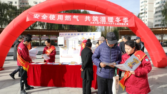 11月10日,太原城管组织太原天然气有限公司和平北路管理站在滨河花苑开展燃气安全宣传活动。郭苑甫 摄