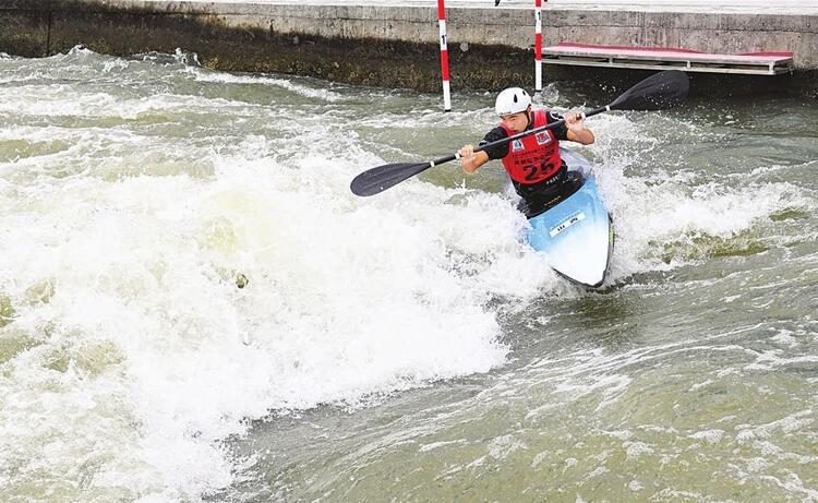 11月12日,第十五届全国运动会皮划艇激流回旋男子单人皮划艇项目开赛,山西队选手张河杰经过两轮预赛成功晋级半决赛。据了解,这是我省该项目选手首次闯入全运会半决赛。图为张河杰在比赛中。牛利敏 摄
