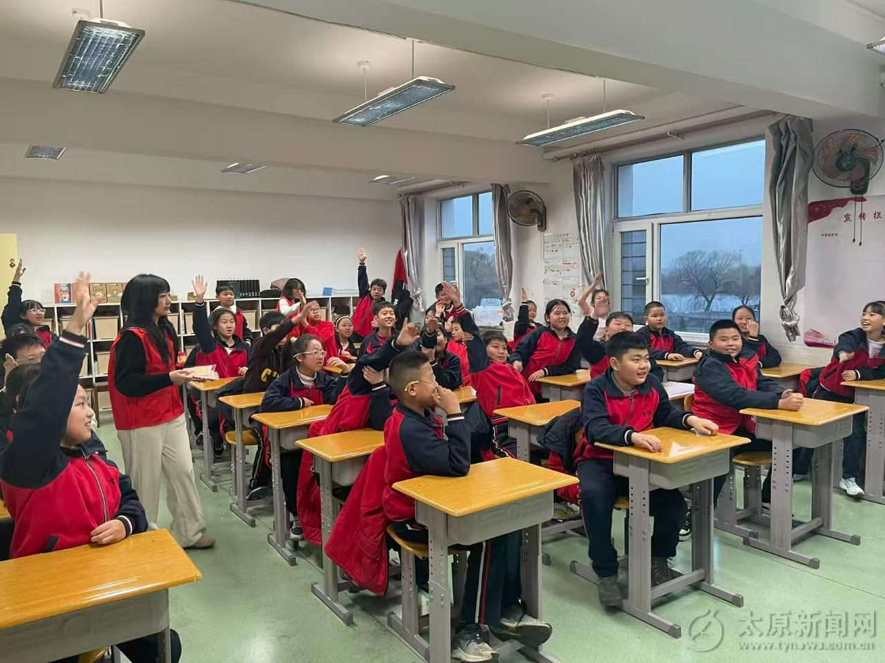 在宣讲环节,晋祠园林中心工作人员化身为“历史讲师”,借助丰富的图片和生动的影像,将雄浑奇巧的古建筑、精妙绝伦的塑像娓娓道来。一段段尘封的历史、一个个鲜活的人物故事,深深吸引了在场每一位学生,课堂上不时爆发出阵阵惊叹与掌声。随后的互动环节则将活动推向了高潮,学生们尝试用自己的语言讲述晋祠故事,感受“文化传播者”的魅力。