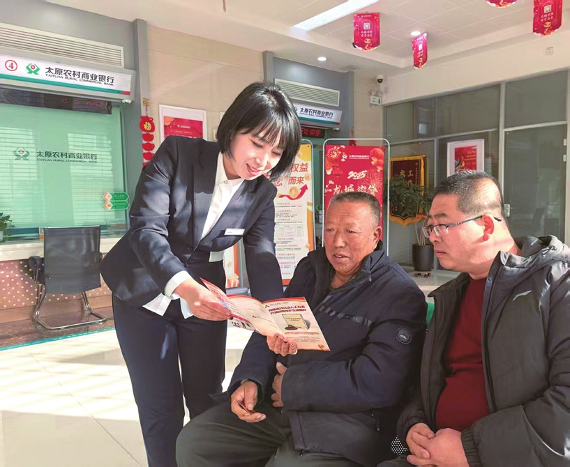 11月27日,太原农商银行工作人员正在为客户讲解反洗钱法。连日来,该行通过粘贴海报、发放资料、现场讲解等方式,积极开展新反洗钱法宣传活动,增强公众的认知度和风险防范意识。