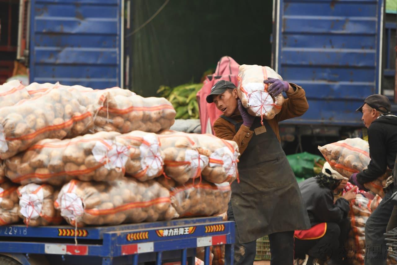 11月29日,河西农副产品市场内,商户们正在卸货。为应对寒潮降温天气,我市各农贸市场提前组织商户加大备货量,全力保障农副产品供应充足。