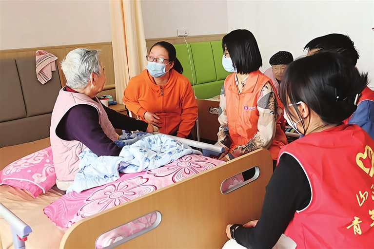 “太原好人”郭大红带领志愿者在养老院看望老人(左二为郭大红)