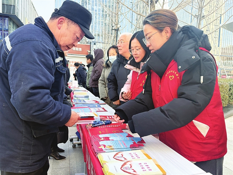 在冬日的晨光中,西海子公园涌动着一股温暖的法治热潮。“宪法是国家的根本大法,是安居乐业的坚实保障。”30余家市直、区直单位设立宣传咨询台,横幅高悬,标语醒目。咨询台前的居民络绎不绝,大家手拿法律宣传折页等实用又贴心的法治宣传品,穿梭于相关部门、法律援助中心、律师事务所之间,带着日常生活中的法律疑惑来“问诊”。