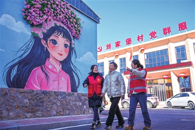 ④小店区刘家堡村党群服务中心志愿者为游客指引路线