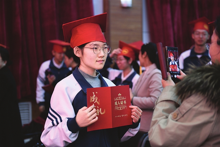 12月18日,太原师范学院附属中学为即将步入18岁的高三学生举行成人礼。