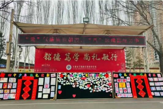 万柏林四中举办“喜迎新年万象更新”元旦系列活动,精心设计了树木涂白美校园、“铭礼迎新巧手寄福”传统文化体验、心愿墙上绘梦想、跳大绳比赛以及班级元旦联欢会五大环节,将劳动实践、文化传承、梦想激励、体育锻炼与情感凝聚有机融合,环环相扣,精彩纷呈,充分体现了学校全面育人的理念。
