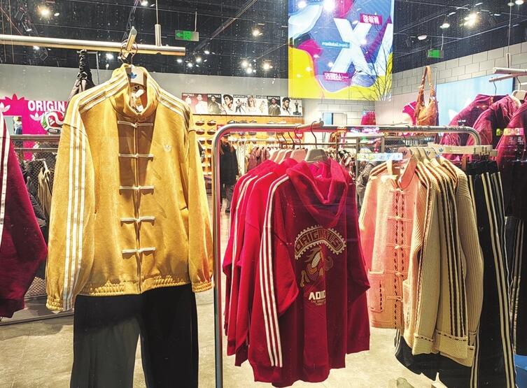 “这款休闲服太有设计感了,穿上一定很潮。”1月3日晚,市民周超路过亲贤街上一家服装专卖店,临街橱窗里展示的一件夹克款的“黄马褂”,立刻吸引了他的眼球。这件衣服形似夹克运动衫,但拉锁外有一排中式盘扣,中西元素结合,别有一番风情。另一款马形图案的中国红帽衫,他也非常喜欢。
