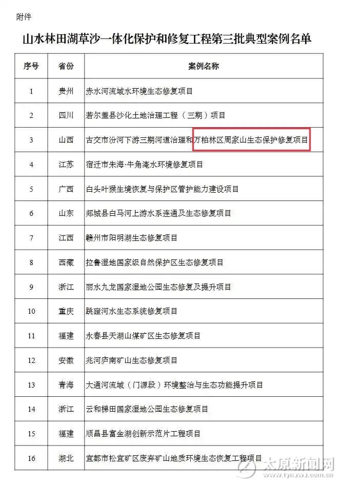 近日,财政部、自然资源部、生态环境部公布了山水林田湖草沙一体化保护和修复工程(简称“山水工程”)第三批16个典型案例,为全国生态保护修复工作再添实践样本。其中,古交市汾河下游三期河道治理和万柏林区周家山生态保护修复项目入选。