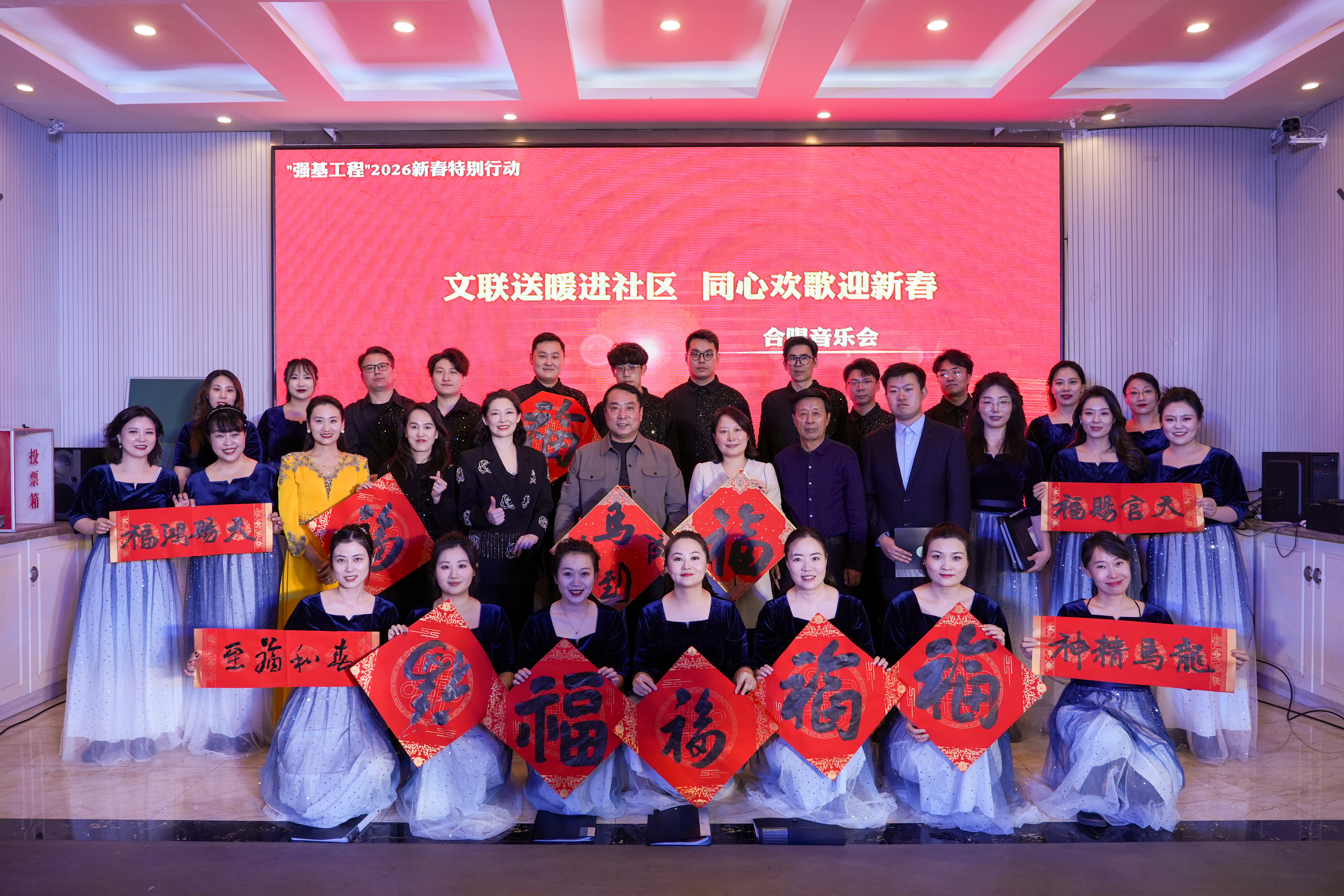 新春将至,暖意氤氲,年味渐浓。1月15日下午,“文联送暖进社区,同心欢歌迎新春”——山西“强基工程”2026特别行动合唱音乐会,在太原市老军营街道新建南路第二社区温情开演,为社区居民送上了一场年味十足、暖意满满的文化盛宴。本次活动由山西省文学艺术界联合会指导,省电影家协会、省电视艺术家协会、省音乐家协会、省书法家协会、省文化艺术传媒中心、省艺术创作研究中心及老军营街道新建南路第二社区联合主办。省文联党组成员、副主席谢振中,原山西省直工委副书记、省文艺评论家协会副主席、一级巡视员余国琦,原山西省文旅厅副厅长、省剧协主席窦明生,太原市迎泽区委常委、老军营街道党工委书记裴涛,太原市迎泽区人大副主任秦宇星,省文联副主席、省艺术创作研究中心党支部书记王小东,省电视艺术家协会副主席兼秘书长谭雯霞等嘉宾出席活动,与数百名社区居民欢聚一堂,在婉转歌声与浓浓墨香中,共叙邻里温情,共迎新春佳节,共话幸福生活。