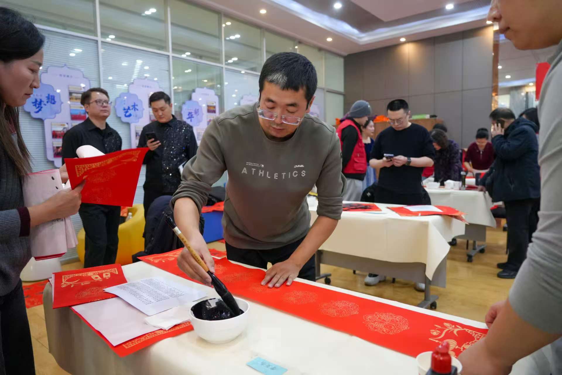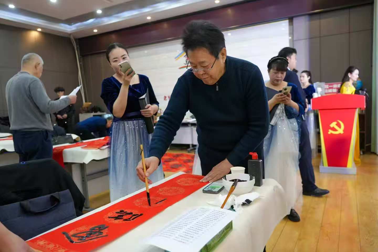 活动现场,年味与暖意交织,惊喜与温情并存。舞台上,著名书法家王国柱挥毫泼墨,笔走龙蛇间,饱含寓意吉祥的“马到成功”跃然红色卡纸上;省书协副主席、省书画院办公室主任李亚杰挥毫送福,带着马年新春的美好祝愿,让大家提前收获新春喜悦。
