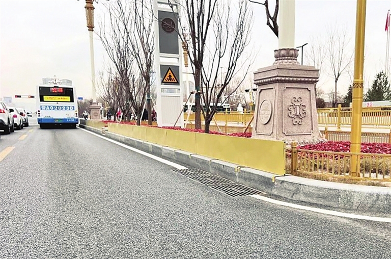 迎泽大街上,新安装的挡雪板将成为绿植保护与市民出行安全的“双保险”。