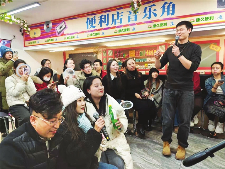 歌手老狼的经典旋律缓缓飘荡,1月24日晚10时许,位于太原长兴路的一家唐久便利店,被悠扬的歌声与开心的笑容装点成一片欢乐的海洋。歌迷们或轻声跟唱,或举着手机记录,仿佛每句歌词都精准戳中那心底最柔软的角落。这是全国首个“便利店音乐角”的现场。在老狼太原演唱会前夕及当日,这里陆续举行了3场精彩纷呈的歌迷歌友会。这些活动不仅是老狼太原演唱会的前奏与后续,更是“歌迷之城、太原宠你”的鲜活注脚。一位从陕西赶来的歌迷捧着店员递来的热水,眼眶微红:“太原不仅用演唱会让我们狂欢,还用这样的细节宠着我们——歌声、热水、笑脸,好暖心!”