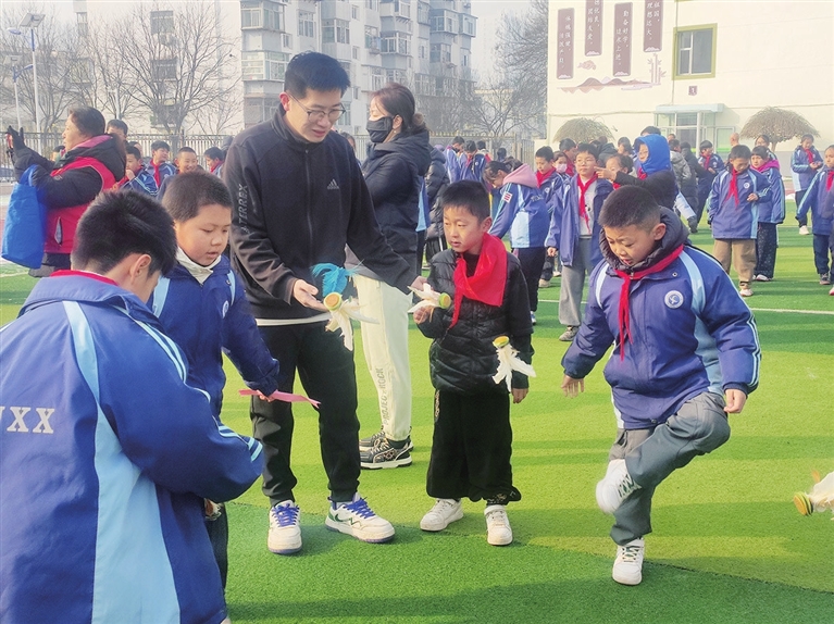 1月26日上午,迎春社区与迎春街小学携手搭台,一场主题为“迎春老少传花毽,祥和平安喜连连”的特色活动在校园内热闹开启。受邀而来的凤姐花毽队,用灵动翻飞的花毽与精湛绝伦的技艺,为师生们献上了一场沉浸式传统体育盛宴。