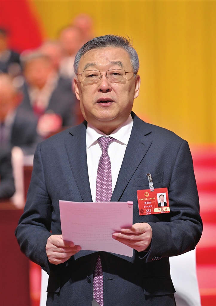 上午9时,唐登杰宣布:山西省第十四届人民代表大会第五次会议开幕。会场全体起立,奏唱国歌。