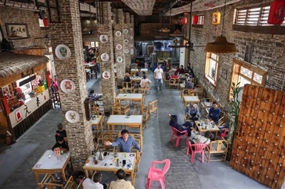 1月27日,顾客在海南定安县定城镇的粮仓咖啡店里聊天。新华社记者 张丽芸 摄