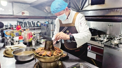 “来了啊,里头坐,正好有桌。”服务员一边招呼着客人,一边利落地给旁边桌添炭。铜火锅肚里,红彤彤的火光跳跃着,映得围坐的食客们满面红光。