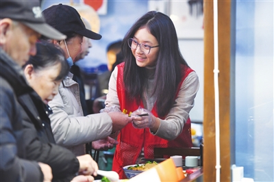 “看到这些老人能吃上热乎的面,我心里特高兴,能出一份力,我觉得很值得。”志愿者王晓颖一边忙碌,一边笑着说。
