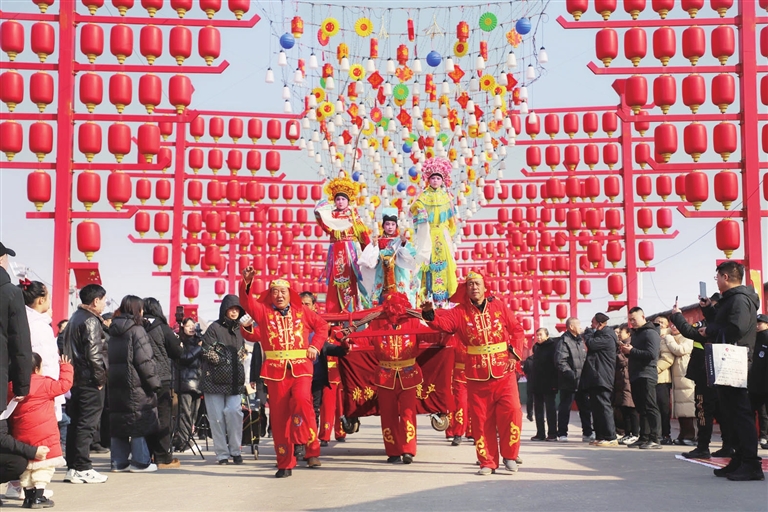 2月17日,2026第五届小店区刘家堡村“堡里有年味 回村过大年”春节民俗活动开幕。背棍、舞狮、舞龙等表演精彩纷呈,吸引众多游人前来观赏。