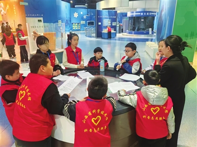 这是省科技馆“小小讲解员”志愿服务活动中的一幕。今年寒假,该馆从285名报名者中选拔了35名9至12岁的小学生,开启为期5天的沉浸式航天科普之旅,特别面向航天爱好者招募。