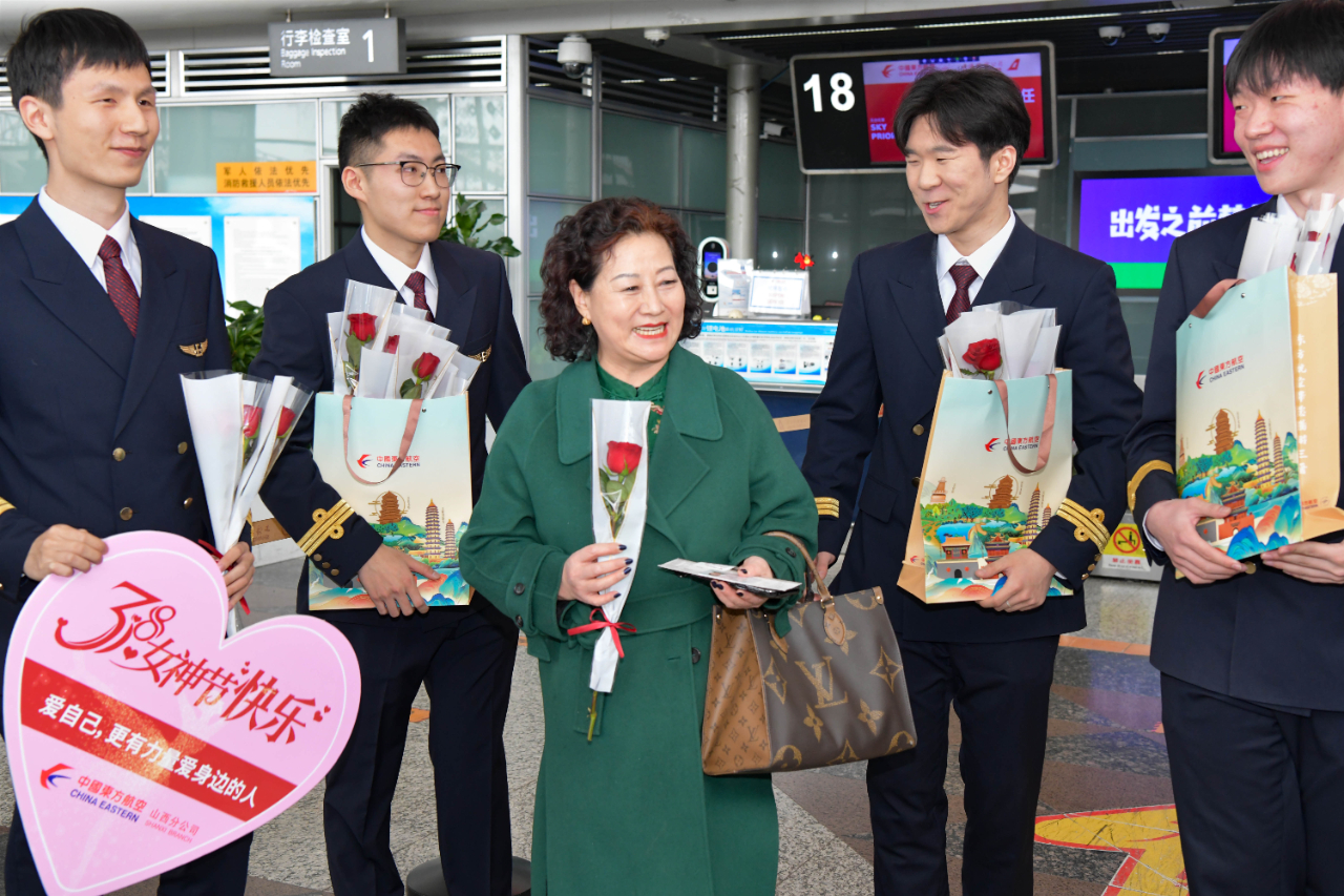 8日上午9点,市民周涛刚踏进候机楼,就从东航飞行员手中接过一支包装精美的红玫瑰,她满脸惊喜。东航山西分公司的6名飞行员和2名安全员组成“送花使者团”,穿梭于值机柜台、安检通道、候机厅,送上节日祝福。手持花束的他们,成为候机楼内一道流动的风景线。
