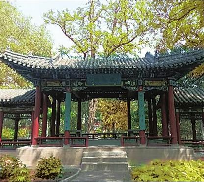 伏龙园的园门开在廊道东侧偏北处,外侧题有门匾,挂着楹联。门额是篆书“伏龙园”三字。题联“古迹虽陈犹在目,春风相遇不知年”。这是清代名流王文治的诗句,也是王文治书法。一副楹联的蕴意使这里顿时充满古迹的沧桑感。徜徉在长廊内,总会怅发一丝怀古忧思之感。
