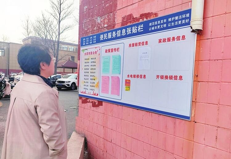 气化街9号院内,一块宽大的信息栏立在院里,经过社区或物业许可的广告,都能在上面“亮相”。居民丢了钥匙、宠物后写的寻物启事,以及出租房屋、寻找保姆等信息,也能往上贴。另外,社区安排了专人定期维护,及时清理过期、虚假信息。