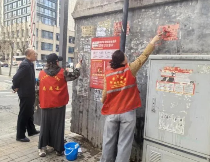 下元街道组织各社区同步开展“靓丽星期五”志愿服务活动,社区工作人员、党员、网格员、志愿者及共建单位人员积极参与。各社区以楼栋环境、卫生死角清理为重点,全面打响“清洁战”。志愿者们手持铲刀、喷壶、热风枪等工具,对楼道墙面、扶手、门框及电表箱上的“牛皮癣”小广告逐一铲除,彻底清理楼院及公共区域堆积的废弃杂物、闲置家具和生活垃圾,耐心劝导居民杜绝私堆乱放,消除消防安全隐患。同时,工作人员对楼栋公共玻璃、窗台及绿化带进行全方位清洁,仔细捡拾杂草、枯枝、白色垃圾,不放过任何一处卫生死角。部分社区聚焦非机动车停放乱象,开展专项整治行动,工作人员携带划线工具,对辖区主次干道、沿街路边模糊、破损的非机动车停车线进行补画和规范施划,对杂乱停放的非机动车逐一摆放整齐,引导居民有序停放,为居民营造了规范有序的通行环境。
