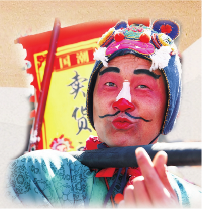 眉眼弯弯、爱笑、富有亲和力,再加上喜庆装扮,杨翔简直是扮演“卖货郎”角色的最佳人选。他说:“没有剧本,全凭感觉,音乐一响,看到游客们的笑脸,心里的劲儿就上来了,所有动作、互动都是顺着当下的氛围来。”