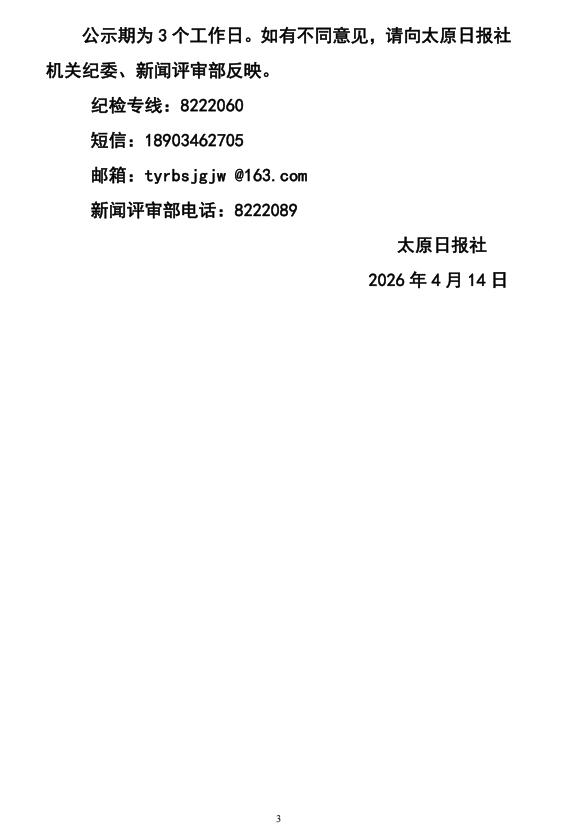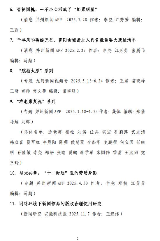 太原晚报申报第35届山西新闻奖评选作品公示名单