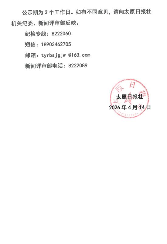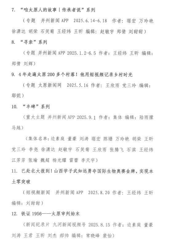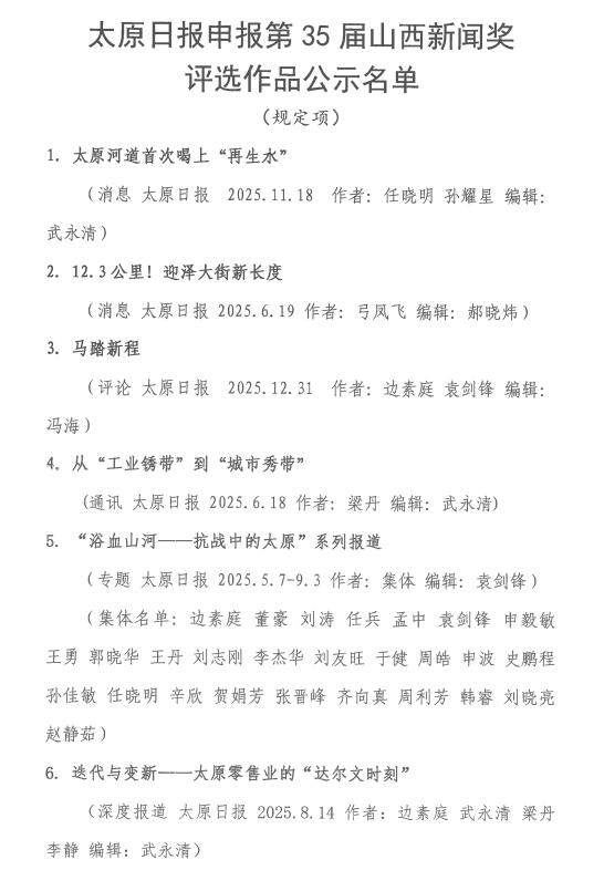 太原日报申报第35届山西新闻奖评选作品公示名单