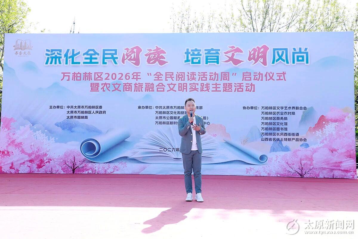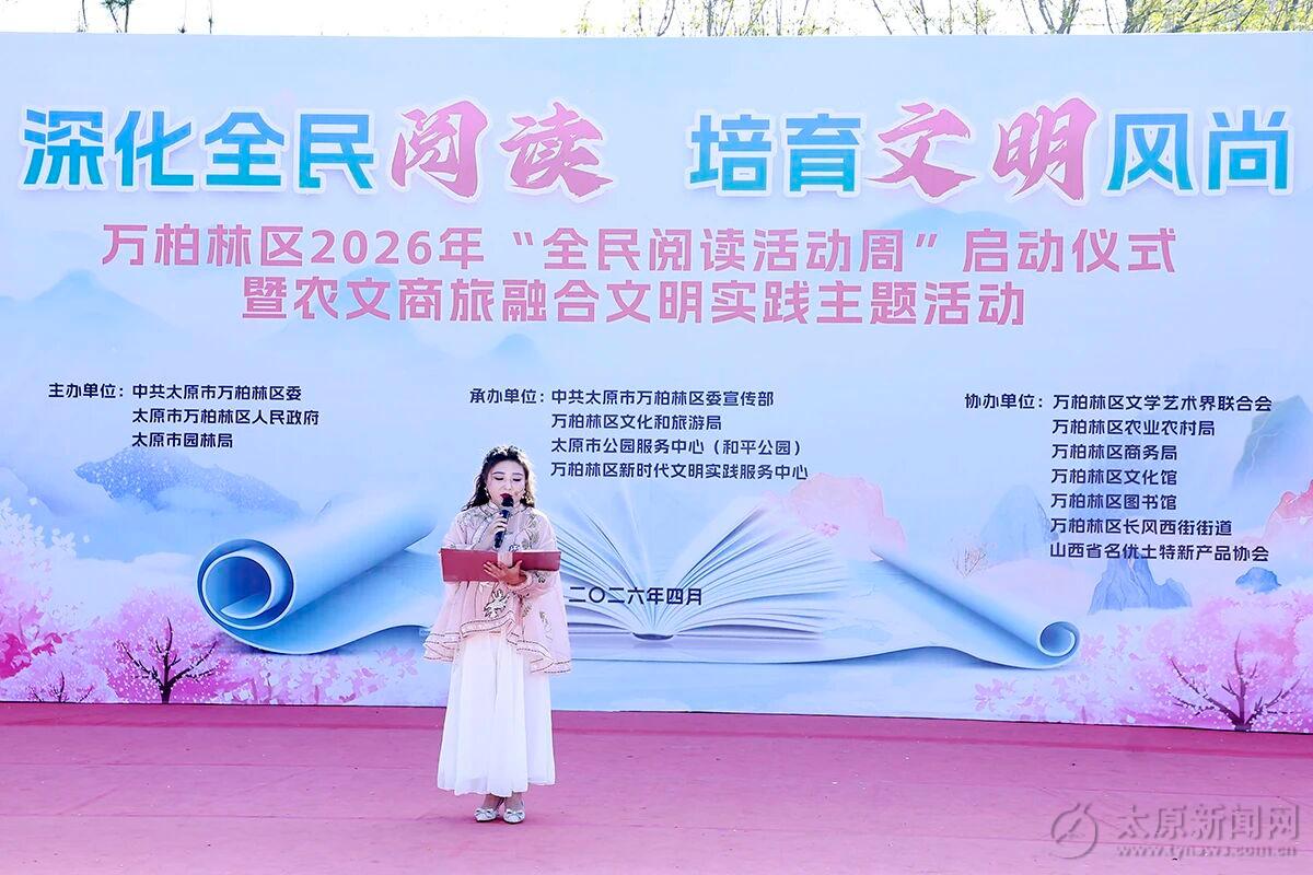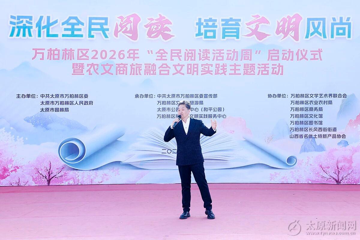 本次活动由中共太原市万柏林区委、太原市万柏林区人民政府、太原市园林局主办,区委宣传部、区文旅局等单位承办,以“深化全民阅读培育文明风尚”为主题,坚持“以人为本、寓教于乐、融合赋能”原则,创新采用“节目展演+素养提升+AI互动+好物推荐+非遗体验”五位一体形式,推动文艺战线助力文明实践,文明实践赋能全民阅读,进一步扩大全民阅读影响、激发人民群众阅读兴趣、营造全社会爱读书的良好风尚。