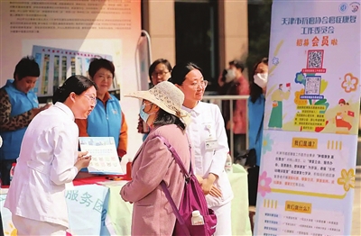 4月15日,天津医科大学肿瘤医院的护士在活动现场给群众进行宣介。新华社记者 李然 摄