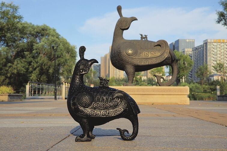 “煤雕鸟尊既是对文物之美的致敬,也是对传统工艺的传承与创新。”手工艺人张权操说。作为煤雕手艺人,他以山西博物院的镇馆之宝晋侯鸟尊为蓝本,雕刻出精妙绝伦的煤雕鸟尊。这种“黑金山”的创意碰撞出煤雕“小悟空”、关公像等系列煤雕艺术品,以山西元素为魂,让深厚的青铜文明融入年轻人的书桌与审美中。