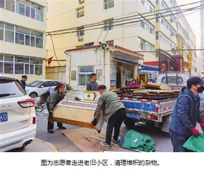 “大爷,您看一下,这些闲置物还要吗?我们帮忙清理掉。”“阿姨,楼道的旧门板太碍事,我们给您搬走了。”在瓦窑街8号院老旧小区,年轻的志愿者们逐个单元楼道摸排,发现违规堆放的杂物可真不少。旧沙发、木板、纸盒子、破旧自行车等啥也有,都是居民不要却又舍不得丢掉的东西。可是,小区没物业,这些杂物也就越堆越多,公共楼道俨然成了“杂物间”。