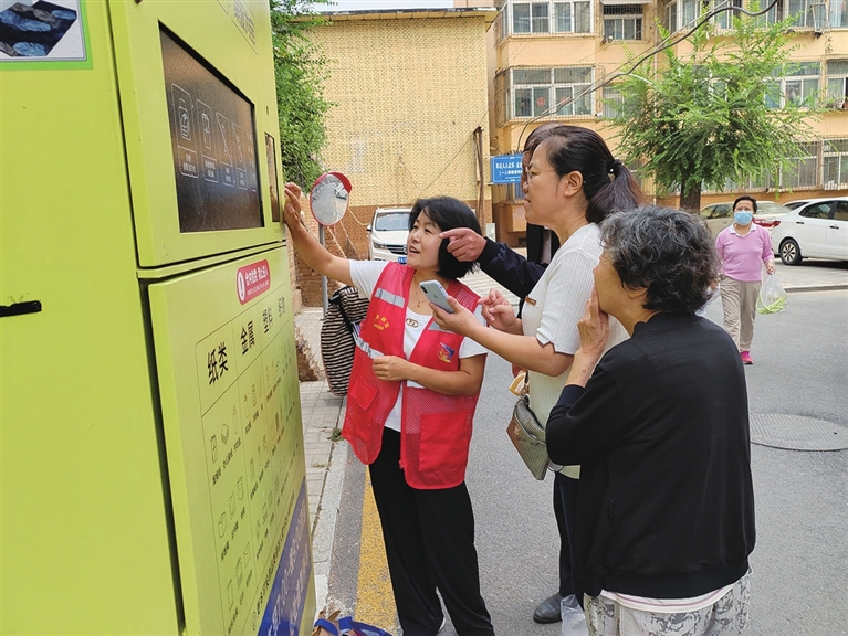 内容提要:居民王大娘拾掇了家里的废纸板、饮料瓶,投进小区新设置的智能垃圾分类回收柜里
